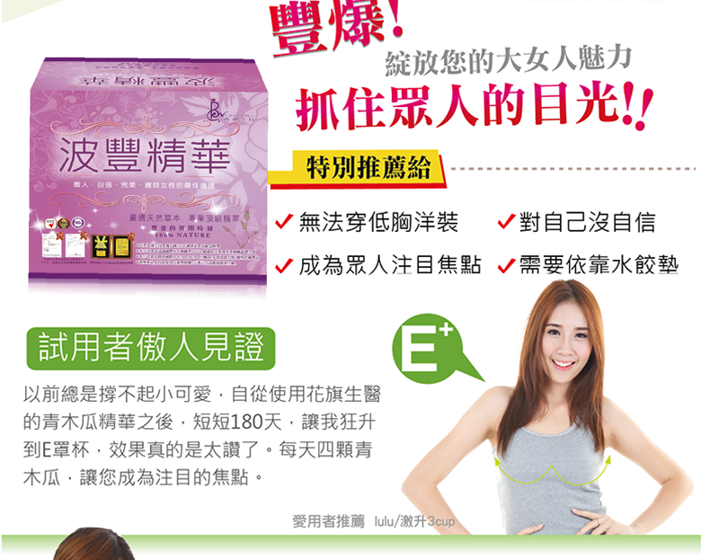 ◆成 份: 泰國葛根、蜂王乳、大豆抽出物(含異黃酮)、鹿茸、王不留行、紅花苜蓿、紅景天、當歸、淮山、植物性膠囊、水、二氧化鈦