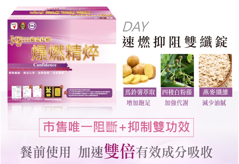 ◆商品名稱: KG333爆燃飲+KG333速燃抑阻雙纖錠